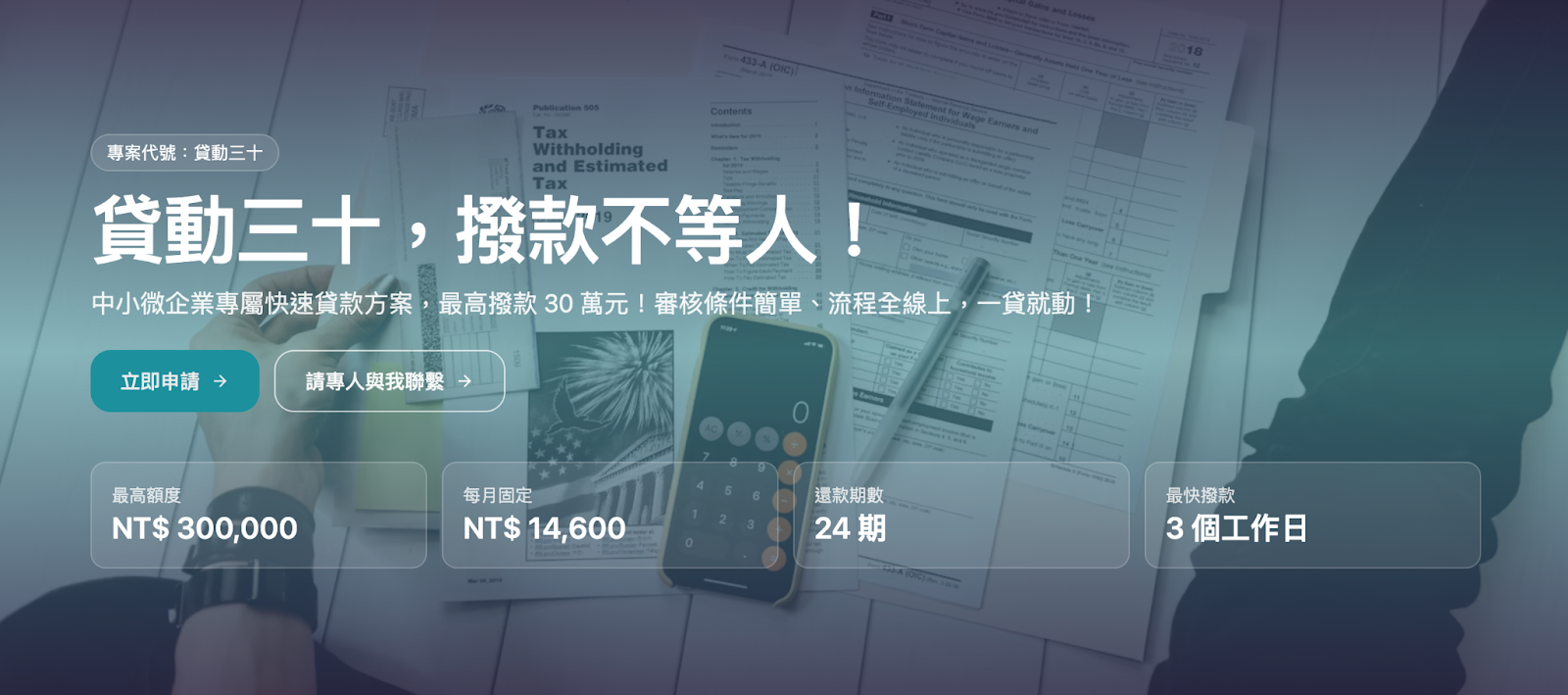 以「貸動三十」為例,就是專為此類需求所設計的金融產品。