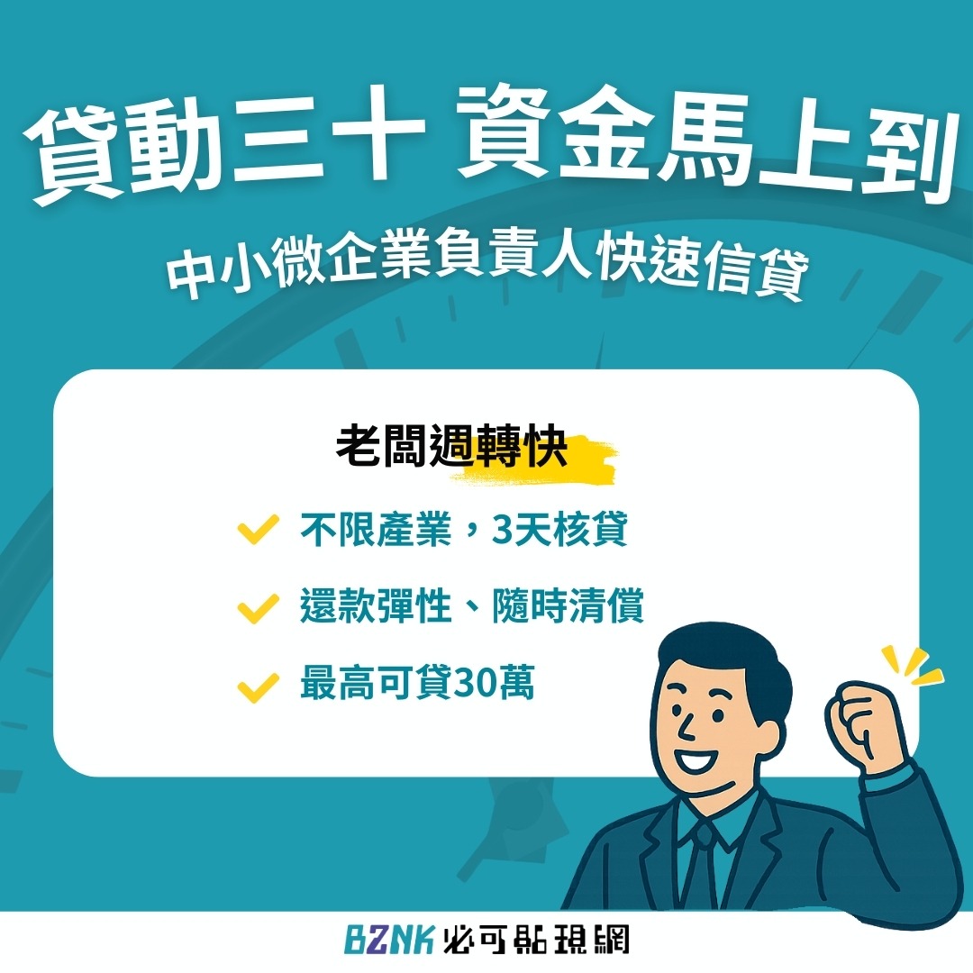 以台灣 P2P 平台 Bznk 必可貼現網 為例,新推出的「貸動三十」專案即針對短期資金缺口設計,協助企業渡過短期資金壓力並建立長期信用。而企業只需提供簡單的基本資料,透過線上平台就能完成申請,最快 3 天內完成撥款。