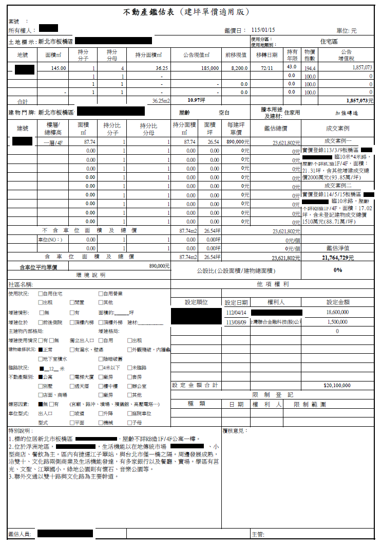 副擔保品鑑價報告