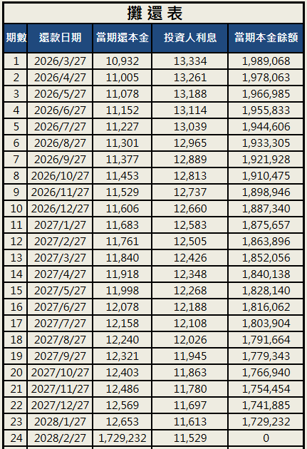 募資金額: 2,000,000(該公司有提早償還本金權利)