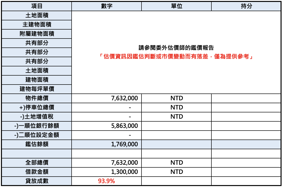 彰化縣彰化市西勢街透天厝 鑑估總額:763.2萬 (土地面積27.23坪,建物面積:27.71坪) 前順位銀行餘額:586.3萬 副擔保抵押設定金額:四順位350萬(前三順位為同銀行) 註:在部分案件Bznk僅為代理催收而非債權人,不動產仍有遭其他債權人扣押之風險,且以不動產的法拍賠償出借人仍須經法院催收程序透過法院強制執行程序進行,請您自行評估並承擔相關風險。