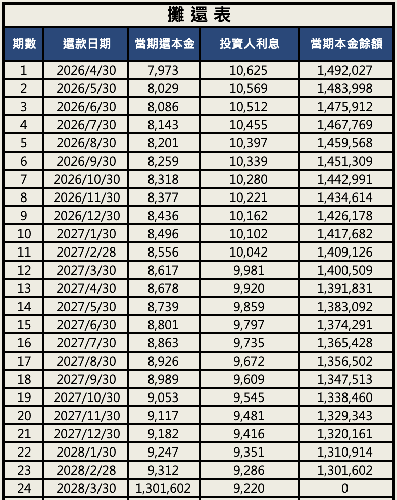 募資金額: 1,500,000(該公司有提早償還本金權利)