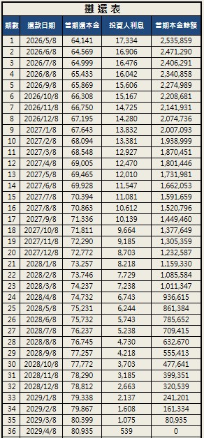攤還表