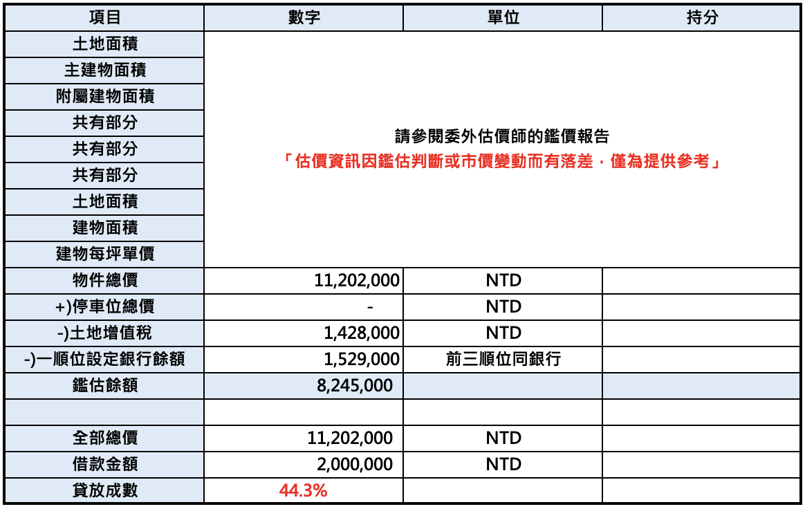 副擔保品鑑價報告