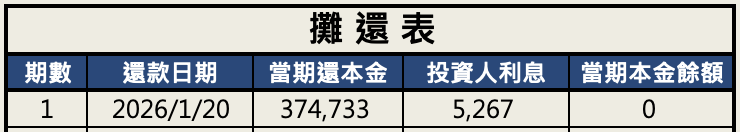 *借款總額新台幣 374,733元,依年利率9%。115/01/20到期一次清償本息。