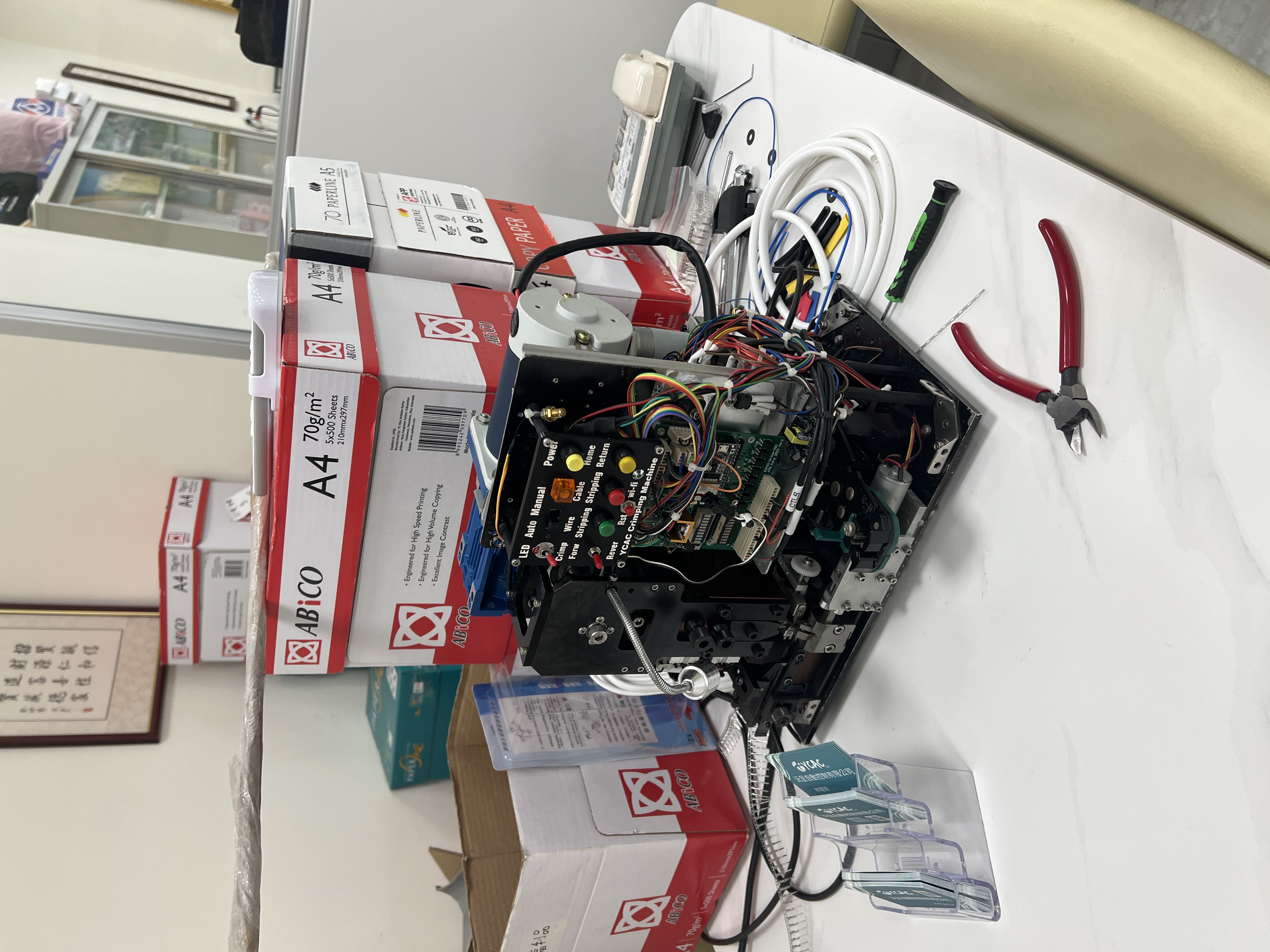 (2)研發與代理:具備解決產業痛點的研發能力,除了獨家研發的「退PIN器」,另擁有「連剝帶打端子壓接機」、「裁PIN器」等多項專利產品;同時獨家代理「CINLINELE」工具及「AIMO」線號機,提供高品質的配電耗材與手工具。